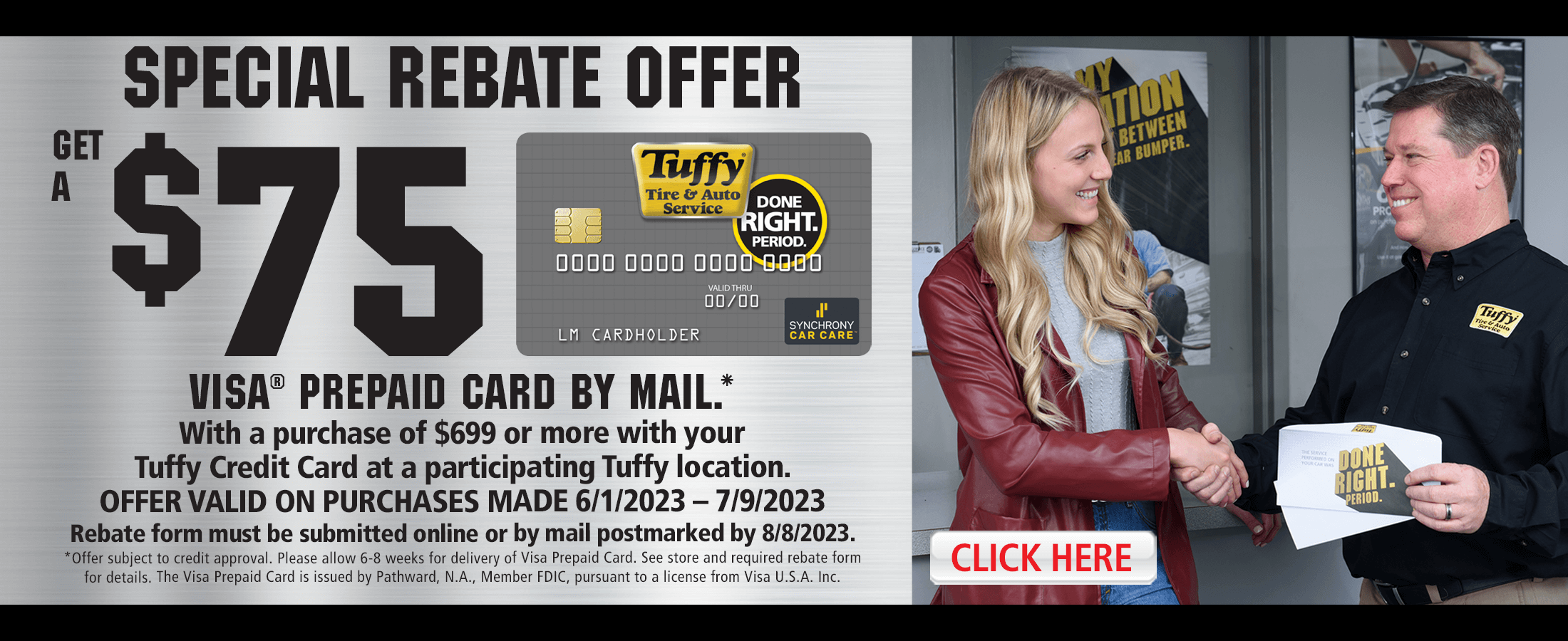 Tuffy loves to reward our customers, so it's natural that our website is full of savings opportunities. For 365 days a year customers can count on finding great quarterly specials on our home page. Furthermore, every month we send out exclusive eSpecial offers to all of our email subscribers!