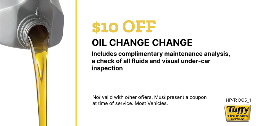 Good only atTuffy Rockford Expires 07/15/26 Schedule Service Print coupon Share to Google Share to Facebook Share to Yelp Offer details $10 OFF Oil Change W/Maintenance Analysis * See coupon for exclusions. Email Coupon First name * Last name * Email address * Sign me up to receive future offers via text from Tuffy Rockford: Via Text Cell/Mobile Phone By clicking "I accept" below, I expressly agree to receive marketing text messages made by or on behalf of Tuffy Rockford to the telephone number(s) I’ve listed above. I understand that I may receive such text messages by the use of Automatic Telephone Dialing Systems (including “Predictive Dialers” or “Autodialers”) and I agree to receive them even if I have registered my number(s) with my state or federal Do-Not-Call list(s). I understand that such text messages will include advertising containing offers for goods or services and that I may revoke this consent at any time by telephone, return text message or by Visiting tuffyrockford.com/stop to unsubscribe. Message and data rates may apply. I also understand that I am NOT required to provide this consent as a condition of purchasing goods or services. I accept View: Text Specials Terms and Conditions with this link.