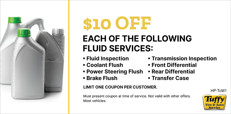 Good only atTuffy Rockford Expires 07/15/26 Schedule Service Print coupon Share to Google Share to Facebook Share to Yelp Offer details $10 OFF Fluid Services * See coupon for exclusions. Email Coupon First name * Last name * Email address * Sign me up to receive future offers via text from Tuffy Rockford: Via Text Cell/Mobile Phone By clicking "I accept" below, I expressly agree to receive marketing text messages made by or on behalf of Tuffy Rockford to the telephone number(s) I’ve listed above. I understand that I may receive such text messages by the use of Automatic Telephone Dialing Systems (including “Predictive Dialers” or “Autodialers”) and I agree to receive them even if I have registered my number(s) with my state or federal Do-Not-Call list(s). I understand that such text messages will include advertising containing offers for goods or services and that I may revoke this consent at any time by telephone, return text message or by Visiting tuffyrockford.com/stop to unsubscribe. Message and data rates may apply. I also understand that I am NOT required to provide this consent as a condition of purchasing goods or services. I accept View: Text Specials Terms and Conditions with this link.